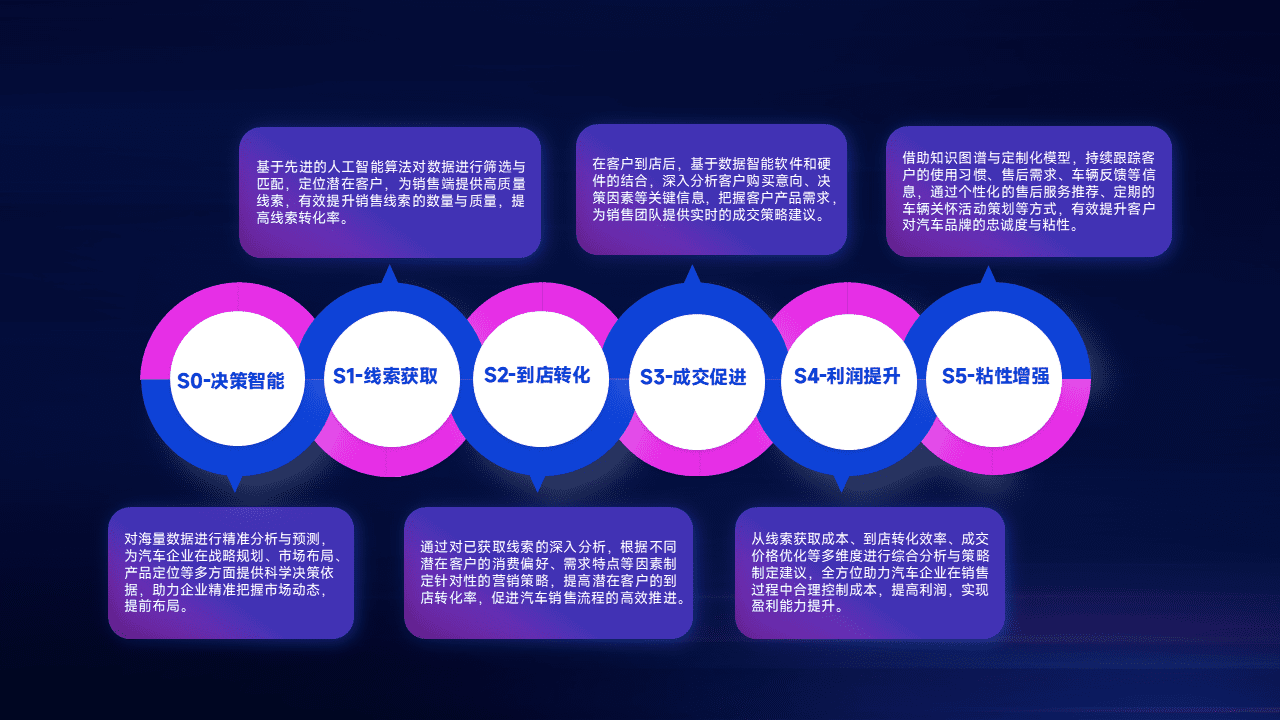 通过拓宽潜在客户来源、、优化线索分配并提高到店转化率,,以增强销售效率。。。。同时,,,,利用线索数据不断优化分析模型,,,,有效提升转化率,,,,扩大营销影响力。。。。
